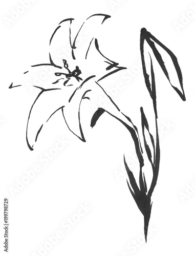 ユリ花グラフィック白黒分離スケッチ イラストのイラスト素材 ベクタ Image