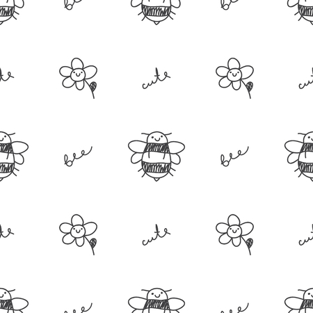 かわいい手で蜂と手書きのテキスト要素のシームレスなパターンを描画のイラスト素材 ベクタ Image