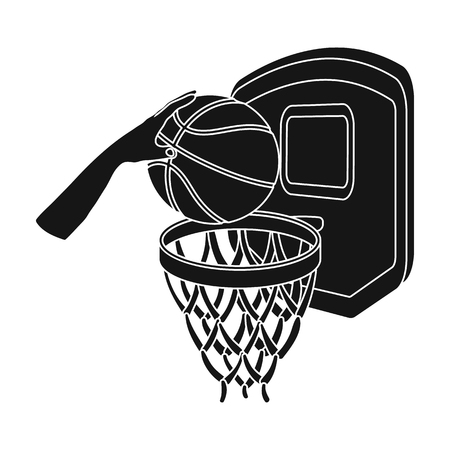 バスケットの近くのボールを持つ手 バスケット ボール単一フラット スタイル ベクトル シンボル ストック イラスト Web のアイコン のイラスト素材 ベクタ Image
