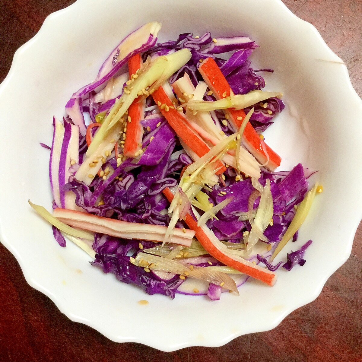 カニカマとミョウガと紫キャベツの中華風サラダ レシピ 作り方 By とりあえず乾杯 楽天レシピ